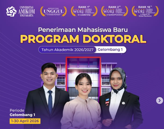 Universitas Amikom Yogyakarta kembali membuka kesempatan bagi calon akademisi dan praktisi untuk melanjutkan studi ke jenjang tertinggi melalui Penerimaan Mahasiswa Baru Program Doktor (S3) Informatika Semester Ganjil Tahun Akademik 2026/2027 Gelombang 1.